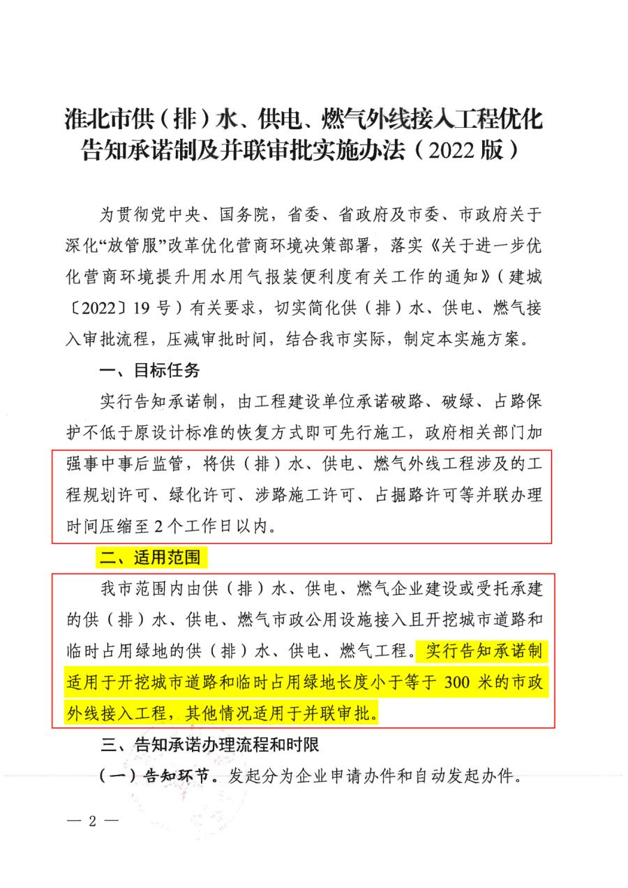 淮北市供(排)水、供電、燃?xì)馔饩€接入工程優(yōu)化告知承諾制及并聯(lián)審批實施辦法(2022版)