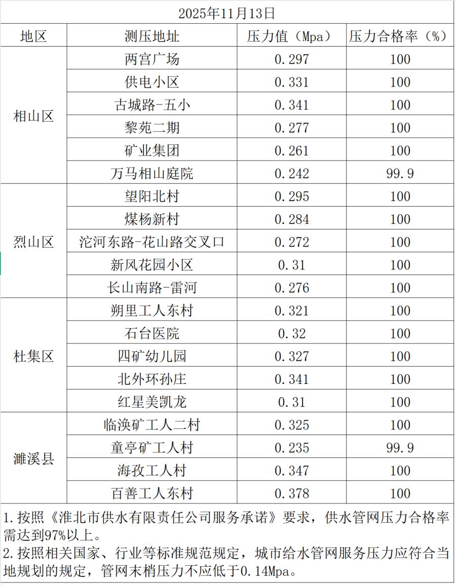 2025年11月13日水壓抽測(cè)公示